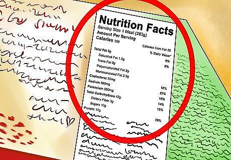 Read the nutritional facts label. Reading the nutritional facts label will give you information that you need to make an informed decision when selecting your frozen meal. The nutritional facts label contains relevant nutrition information, such as the fat and sodium content, vitamins, and serving size of your meal. Make sure to read recommended daily values and assess if the meal you plan on buying will give you the nutrition and energy you need for the day. Note the serving size of your frozen meals, and adjust the values based on how much you eat. For example, if you have two servings in one package, you must multiply the calories by two to get an accurate account of how much you'll be eating.