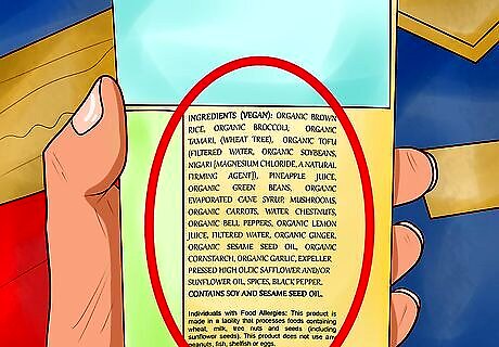 Read the ingredients list. The ingredients list will key you into how natural the frozen meal is. Choose frozen foods with a short list of ingredients and preservatives. If you see too many artificial ingredients or flavors, consider choosing a different brand or meal. Companies who utilize sustainable practices have fresher and healthier foods because they incorporate things like grass-fed beef and freshly caught fish in their meals. Some of the unhealthiest artificial ingredients found in many frozen meals include textured soy protein concentrate, carrageenan, maltodextrin, disodium inosinate, modified cornstarch, and disodium guanylate. Remember to not rely on what it says on the front of the package. The details of what you need to know are always on the Nutrition Facts panel.
