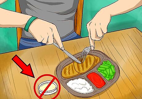Skip dinners that are fried or have creamy sauces and gravy. Fried meals or meals with a creamy sauce or gravy are typically high in fat and sodium. Replace fried food with grilled or steamed variations. Certain frozen foods, like french fries, can be baked instead of fried to cut down on saturated fat. Meals that contain a creamy sauce like chicken pot pie can contain up to 14 grams of fat.