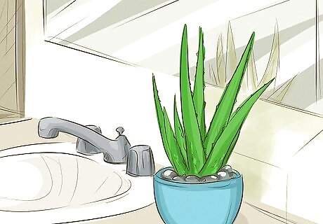 Grow some aloe. This succulent not only brightens up a bathroom, it also has some medicinal properties. If you have a cut or burn, break open a leaf and apply the gel that you find inside to your wound. This plant will do best when kept in a bright windowsill. Aloe needs little watering and grows well in a wide pot.