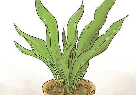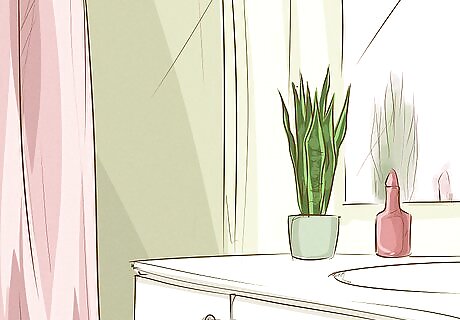 Grow a snake plant. This low-light plant is also an extremely low-maintenance choice. It needs little watering beyond your bathroom’s humidity and it will not grow very large. The snake plant is a great choice for the bathroom because it filters out formaldehyde, which is common in many cleaning products, toilet paper, and some cosmetics. This plant thrives in temperatures between 40°F and 85°F (5°C to 30°C). Initially, you can keep this plant in your windowsill. However, you may eventually need to put it on the floor.