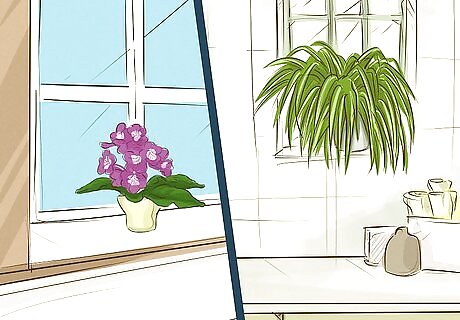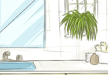 Place a spider plant in your window. This plant prefers a medium amount of light, so be sure to keep it near a window. It should get most of its needs from the moisture of your bathroom. However, you may want to water it once or twice a week if it starts to look wilted. This plant will also help filter our formaldehyde from your air, which is found in many cleaning products.
