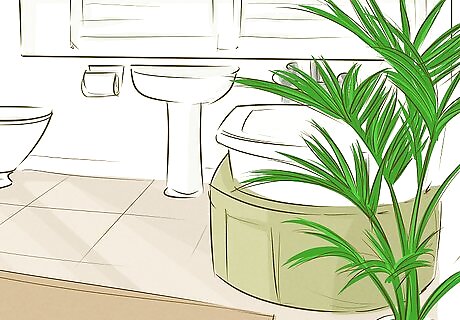 Set a pot on the floor. If you have the space in your bathroom, you may want to put larger potted plants on the floor. Some plants will eventually outgrow a windowsill or shelf. At that point, you will need to repot them and place them on the floor. You may also consider relocating plants that have grown too large to another room in your home.