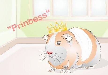 Choose a regal name for your guinea pig. Many people give their pets names like Prince or Princess that allude to royalty. These names can reflect how important your new pet is in your life! Other examples of regal or formal names include Queen or Queenie, King, Duke, Duchess or Lady.