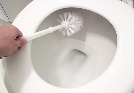 Scrub the toilet regularly. Even if it doesn’t look dirty, minerals in the water can stain the toilet bowl, so it’s a good idea to scrub the toilet down with a sturdy toilet brush regularly. If you do this even just once a week, your bigger cleanings will be much easier and less frequent.