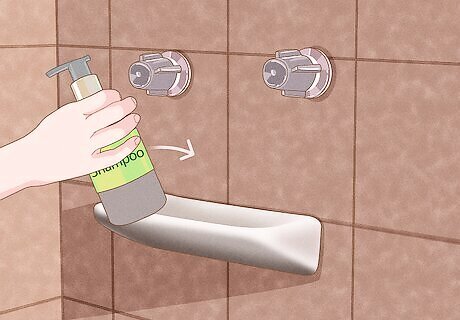 Clear off surfaces and remove items that don’t belong in the bathroom. Remove shampoo and conditioner from your shower, take your toothpaste and toothbrush off the sink, and clear off anything else that would prevent you from properly cleaning the surfaces in your bathroom. If you find something that doesn’t belong in the bathroom, put it in its proper location. Move any side tables or movable storage cabinets so you can clean under them, as well. Remember, the floor counts as a surface, so move any trash cans and bathmats, too.