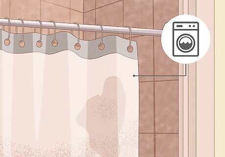 Wash your shower curtains and liners. Because they’re exposed to moisture, shower curtains and liners can become moldy and full of bacteria. While you don’t have to wash them every time you clean your shower, aim to clean them at least once a month. In general, wash your shower curtain (plastic or fabric) in the washing machine, but check the manufacturer’s instructions to be sure.