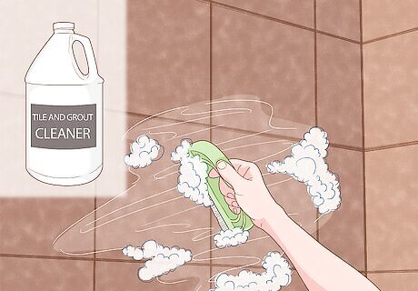 Scrub tile and grout. Depending on the conditions of your bathroom, it’s best to scrub tile every month or so, while grout only needs to be cleaned 3 or 4 times a year. Scrub your tile with your preferred tile and grout cleaner, and dip a grout brush into bleach to clean any discolored areas. Turn on your exhaust fan and leave the bathroom door open to keep the room ventilated. Seal grout every 6 months to prevent moisture and grime from seeping into it. EXPERT TIP Filip Boksa Filip Boksa House Cleaning Professional Filip Boksa is a House Cleaning Professional and the CEO and Founder of King of Maids, a company based in Chicago, Illinois. With over 10 years of professional experience, Filip and his team at King Maids specialize in providing home cleaning and organization services to their clients. They are dedicated to delivering high-quality and reliable service to ensure customer satisfaction. Filip Boksa Filip Boksa House Cleaning Professional Clean tile grout with a hydrogen peroxide solution. Create a solution of 1/2 cup baking soda, 1/4 cup hydrogen peroxide, and 1 tsp of dish soap. Apply this mixture to the grout and allow it to sit for 5-10 minutes. Use a grout brush to scrub the mixture into any cracks, then rinse with clean water.