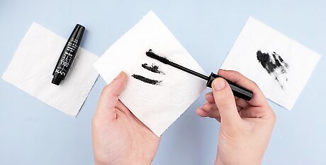 Use a tissue to get rid of clumps before you apply mascara. Grab a clean, dry piece of bathroom or facial tissue and swipe your mascara brush over it once or twice after you pull it out of the tube. This gets rid of the blobs of excess makeup that cause those annoying clumps. When you’re done using the wand, wipe it again—especially if you don’t store it inside the tube of mascara. You can also buy a simple tool called a Clump Cleaner to break up and remove clumps on your brush. This tool is a small piece of plastic with holes of different sizes. Choose the hole that matches the size of your brush and pull the bristles through it to wipe off excess mascara.