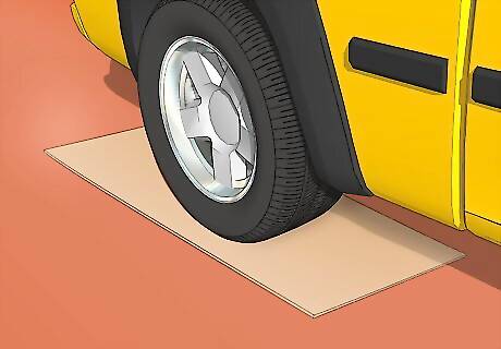 Put cardboard under the tires of parked vehicles. Vehicles that are kept parked for long periods of time, such as over the winter, can leave tire marks on your epoxy floors. Before parking vehicles for too much time, place cardboard of enough length to completely cover the tire. That way you won’t have an unfortunate surprise come spring.