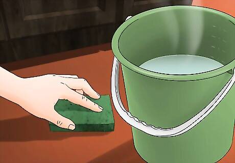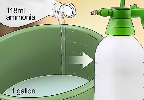 Mix a solution of ammonia cleaner and hot water. Ammonia will allow you to clean the floors of any tenacious marks or spills. Mix 4 fl oz (120 mL)of ammonia to 1 US gal (3.8 L) of hot water. Pour the solution into a spray bottle once properly mixed.