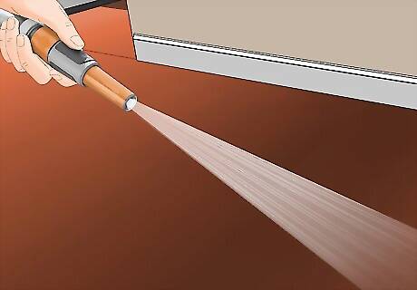 Hose down the floor. The treatment of epoxy floors makes them resistant to water. This allows for simple removal of any leftover cleaning solution. If you have a garden hose, simply spray water over the whole floor, washing the cleaning solution away. If you don’t have a garden hose, you can use a bucket of water, lightly splashing your floors. You can use a squeegee to rid your floor of water, sending it away from your floor. If the epoxy floor is in an area that doesn’t lead to an exit, you can use a hard foam mop to soak up the water and wring it in a bucket.