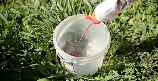 Fill a bucket halfway with water, then add the boric acid. The concentrated acid's strength will determine how much acid you'll need for a diluted cleaning solution. Pour the water first instead of the boric acid to prevent burns from the acid splashing up while adding water. You can buy boric acid online or from most home improvement stores. Boric acid generally comes in dry, highly concentrated packages before they're mixed with water, so handle it carefully and check the directions for how much to add.