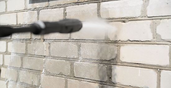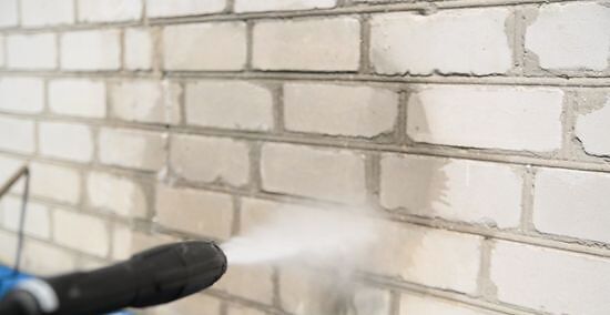 Spray the brick's surface with a pressure washer about 12–18 inches (30–46 cm) away. Standing about 12–18 inches (30–46 cm) away from the brick's surface, turn on the power washer and spray the surface of the brick. Work from the bottom of the brick upward to make sure you coat the entire surface. Spraying the brick before adding a cleaner will prevent it from absorbing any cleaners and corroding.