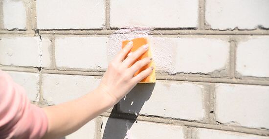 Apply a mild cleaner or dish soap to the surface of the brick. Dip a washcloth in dish soap or a mild home cleaner mixed with water, as directed by the packaging. Wipe the solution over the surface of the brick in gentle, circular motions, coating the entire brick in the cleaning solution. For deeper set stains, you can apply a mixture of boric acid and water instead. Make sure to wear goggles, gloves, and long-sleeved clothes and work in a well-ventilated location.
