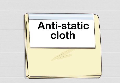 Use a dry antistatic cloth. Static attracts dust, so it's important to avoid other kinds of cloths. The cloth should be soft and clean. Softness and cleanliness will protect your negatives from scratches. Anti-static cloths are available at photography supply stores.