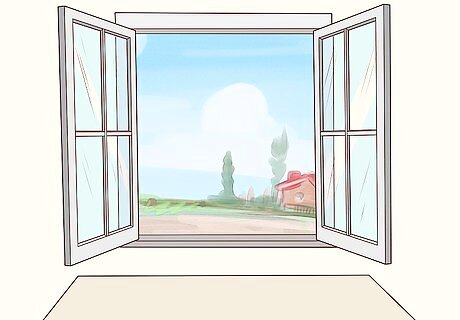 Find a well-ventilated space. Isopropyl alcohol in high concentrations emits fumes. Work in a room with an open window. If possible, place a fan in the window so that it faces the outside. This will draw fumes out of your workspace.