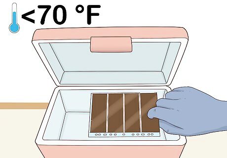 Control the storage room humidity. Humidity can trigger the growth of mold and rust. Too much moisture in the atmosphere can lead to watermarks on the negatives. Don't allow the relative humidity to rise above 30-40 percent. If your negatives are heirlooms or antiques, you should consider investing in a hygrometer, which measures ambient humidity.
