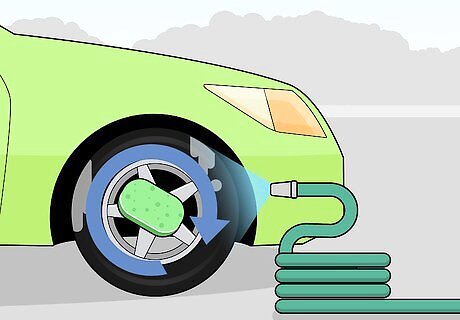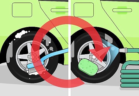 Allow the vehicle to cool. Don’t wash the rims right after driving. Let the car rest with the engine off. It can take hours for the entire car to cool, but you can test the rim temperature by moving your fingers close. When the rims feel cool to the touch, you can clean them. On warm rims, water and cleaner may leave stains.
