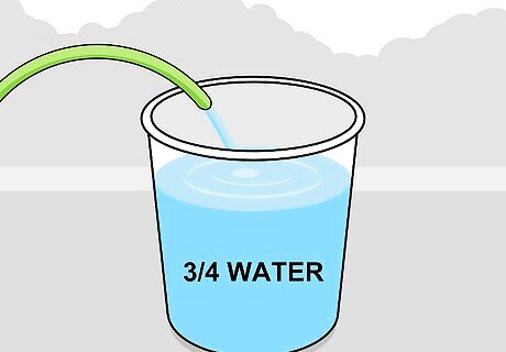 Fill a bucket with water. Get a mop bucket or other large water container. Fill it ¾ full with lukewarm water. This only needs to be done if you plan on using a liquid soap. Spray-on cleaners are also available and can be used to avoid having to mix soap and water. Look for brands such as Eagle One, Meguiars, and Mothers.