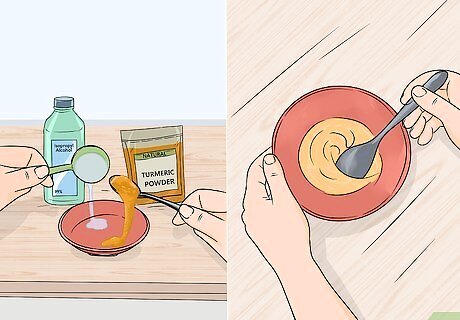 Stir 1 teaspoon of pigment into 1 tablespoon (15 mL) of rubbing alcohol for melt and pour soap. Pour 1 tablespoon (15 mL) of 99% isopropyl alcohol (rubbing alcohol) into a small dish. Stir in 1 teaspoon if your desired pigment powder. Keep stirring until the color and texture are even. Skip this step if you're making cold process soap from scratch. If you're using clay, stick with distilled water instead. Avoid tap or filtered water, however. This is enough to dye 3 pounds (1.4 kg) of soap. Keep in mind that you don't have to use all of your dye.
