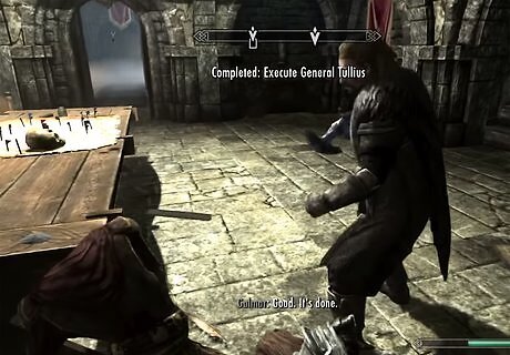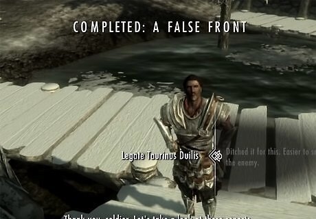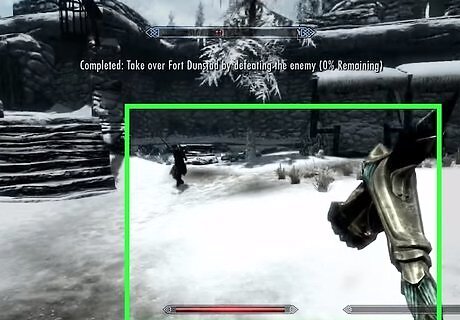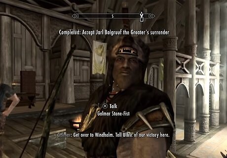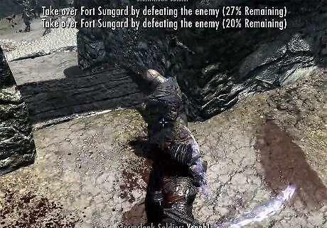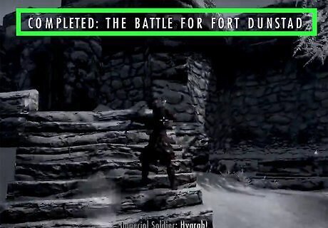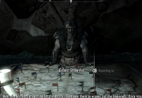 Lead an assault on Fort Sungard. In the quest “The Battle for Fort Sungard,” speak with Galmar. He will ask you to meet up with Stormcloak soldiers to help take over Fort Sungard west of Whiterun. Once you have taken the fort and killed all Imperial troops, the quest will be completed.