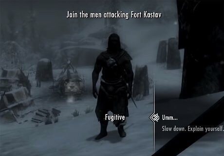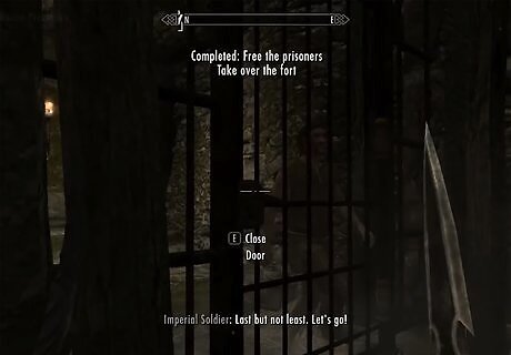 Secure Fort Neugrad and rescue the prisoners. Speaking with Galmar Stone-Fist will result in the quest “Rescue from Fort Neugrad.” You will be required to meet up with Stormcloak troops outside of the Fort Neugrad, found southeast of Helgen. You have the option of storming into the fort or going in quietly by sneaking past guards. If you decide to sneak into the fort, you will need to clear the guards later to release the prisoners. Storming into the fort can be more dangerous but is possible for someone who is wearing heavy armor. Locate the prisoners from within the fort and eliminate any Imperial troops. Once you have freed the prisoners and cleared the fort, speak with Ralof, who can be found just outside the fort, to complete the quest.
