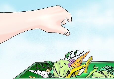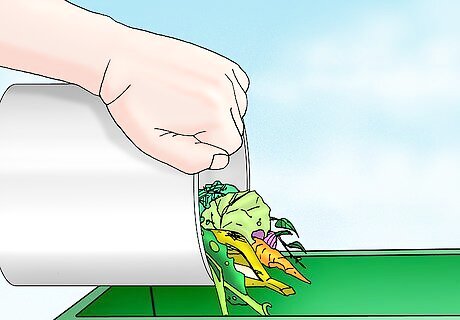 Add some carbon-based ingredients. Typical carbon-based ingredients for compost include straw, leaves, cardboard, and shredded newspapers. However, gardeners should only add black and white or grey newsprint because colored sheets may contain potentially toxic chemicals.