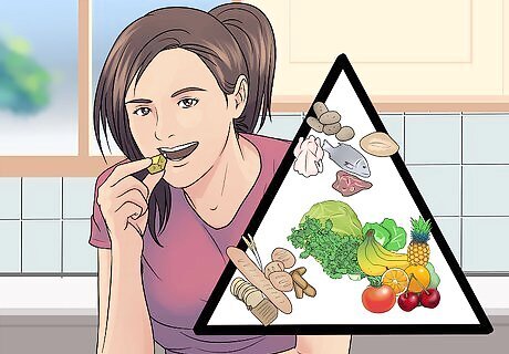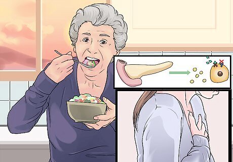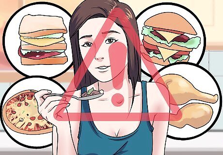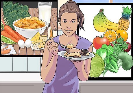Increase the fiber in your diet. This can be done by increasing your fruit and vegetable intake, as well as by adding specific high-fiber foods to your meals. For example, you can include a tablespoon of ground flaxseeds at every meal. Either get a coffee grinder to grind your own flaxseeds or keep pre-frozen ground seeds in your freezer (to keep the healthy oils that you also get in flaxseeds from getting rancid).