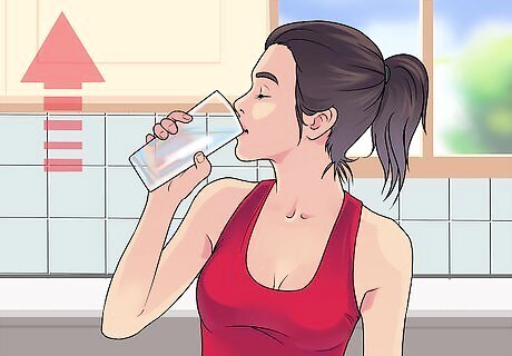 Increase the amount of water you drink. According to the Institute of Medicine, women should consume about 2.7 liters (91 ounces, or 11 cups) of water each day, and men should consume about 3.7 liters (125 ounces daily, or 15 cups) of total water. This may seem like a lot, but that's because this measurement takes into account the water we get from foods and other beverages. Your hydration needs will vary depending on your gender, age, location, activity level, and many more factors. Beverage intake includes tea and coffee. Unsweetened, habitual coffee drinking may even decrease your risk of type 2 diabetes.