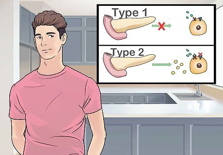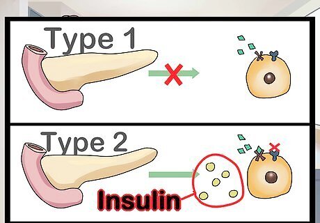 Understand the different forms of diabetes. Type 1 diabetes is an autoimmune disorder, usually appearing when a person is quite young. Type 2 diabetes is an acquired disorder. There is also gestational diabetes and prediabetes. In Type 1 diabetes (T1D), specific cells in the pancreas, the beta cells, are destroyed. Because beta cells make insulin, in T1D, the body is no longer able to make insulin and no longer able to control blood sugar levels. People with T1D have to take insulin their whole lives. Type 2 diabetes used to be considered an adult condition that is unfortunately appearing more and more often in children. Type 2 diabetes (T2D) or diabetes mellitus is the most common form of diabetes — genetics, diet and environmental factors play an important role in the development of Type 2 diabetes. In T2D blood sugar levels can be controlled by diet, medication, supplemental insulin, or a combination of all these. A third form of diabetes is called gestational diabetes. It occurs in the second half of pregnancy and occurs in less than 10% of pregnant women. Some physicians include a condition called prediabetes as an early form of diabetes. Individuals with prediabetes have higher than normal levels of blood glucose, but not high enough to be diagnosed as diabetics. Individuals with pre-diabetes (also known as insulin resistance) have a very high risk of developing T2D.