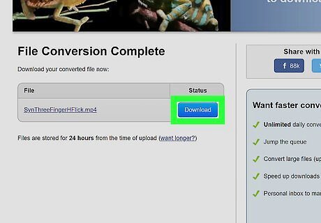 Click Convert. A progress bar will appear as your file converts. When the progress bar fills up, a new page will load.