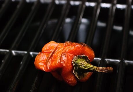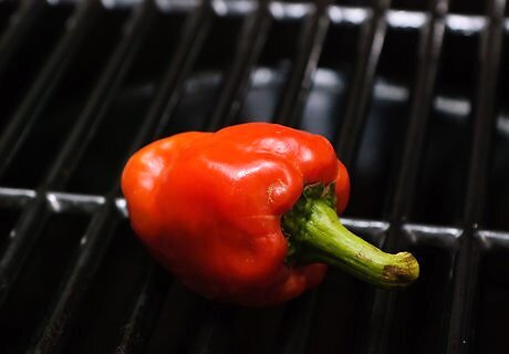 Heat your grill to high. You will want to chargrill your peppers directly on the grill plate. This method can be method as the peppers will leak juices as they roast. Wear your protective oven mitt. Place the peppers directly onto the grill.