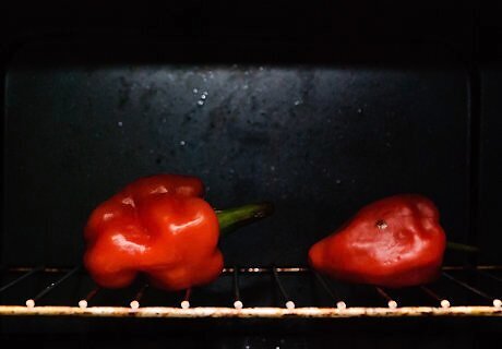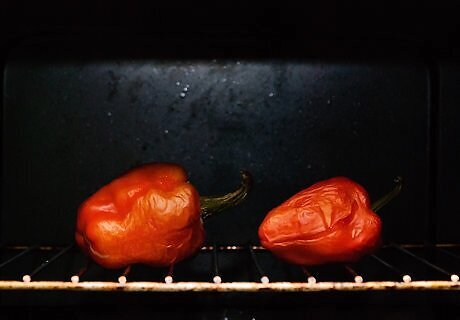 Roast some red peppers. One of the easiest and most common ways to do this is in the oven. Roasted peppers are used in lots of different types of cuisine, so this is an important skill to learn. To roast peppers in the oven, you will need the following supplies and ingredients: Red bell peppers A paper bag A towel A baking sheet Aluminum foil Oven