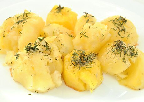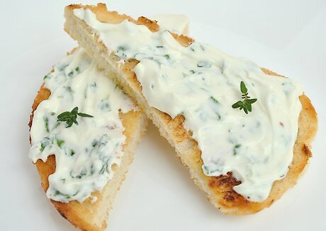 Spread thyme-infused cream cheese on crackers. Mix together 1 teaspoon (5 g) of fresh thyme leaves (or ⅓ teaspoon (1.67 g) dried thyme), 1 teaspoon (5 g) of finely minced chives, 1/8 teaspoon (0.625 g) of white pepper, and 1/8 teaspoon of salt (0.625 g). Blend the seasonings into 3 oz. of softened cream cheese with a food processor. Serve the spread with toast triangles or crackers.