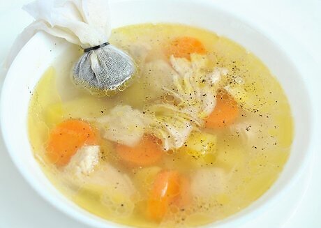 Create a bouquet garni with dried thyme. Combine 1/2 teaspoon (2.5 g) of dried thyme and 1/2 teaspoon (2.5 g) each of marjoram, rosemary, and sage along with a bay leaf in a small square of cheesecloth. Tie the corners of the cheesecloth with a bit of string to make an herb packet. Float this packet in homemade chicken soup or beef stew or add it to a pork roast as it cooks for an added infusion of flavor.