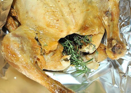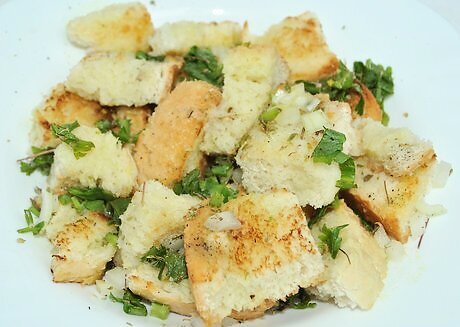 Season your stuffing with thyme. Combine 1/2 teaspoon (2.5 g) each of dried thyme, rosemary, marjoram, and sage. Add 1/8 teaspoon (0.625 g) of salt, 1/8 teaspoon (0.625 g) of black pepper, 2 tablespoons (30 mL) of melted butter or margarine with 1 cup (237 mL) of chicken broth. Chop 2 celery stalks and 1 small yellow cooking onion into small pieces. Combine the celery and onions with 6 cups (768 g) of croutons or dried bread broken into pieces. Pour the butter, broth, and spice mix over the bread and vegetables. Toss the mixture with a spoon until all the pieces of bread are coated. Use the coated bread to stuff a turkey or chicken before roasting.