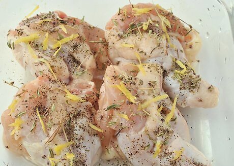 Make a lemon, thyme, and pepper rub. In a small bowl, combine 1 tablespoon (15 g) of finely grated lemon zest, 1 tablespoon (15 g) of dried thyme, 2 teaspoons (10 g) of salt, and 1 tablespoon (15 g) of pepper. Before cooking your meat, press the dry rub into the meat, such as steak or pork chops, to add flavor.