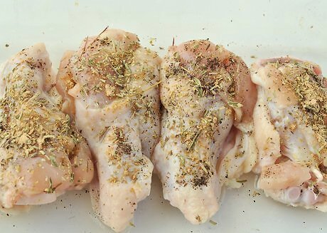 Create a thyme and rosemary rub. Combine ⅓ cup (42.5 g) of salt, 1/4 cup (32 g) of dried rosemary, 2 tablespoons (30 g) of dried oregano, 2 tablespoons (30 g) of dried thyme, 2 tablespoons (30 g) of dried garlic flakes, 2 tablespoons (30 g) of cracked black pepper, and 1 tablespoon (15 g) of dried sage in a bowl. Sprinkle the rub over chicken or ribs and lightly press it into the meat before cooking.