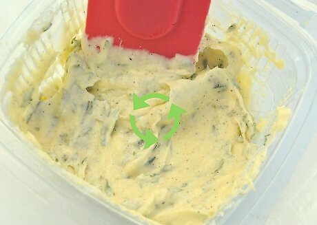 Mix thyme, salt, and pepper into the butter. Put the softened butter in a mixing bowl. Add 1 teaspoon (5 g) of coarse sea salt and 1 teaspoon (5 g) of freshly-ground black pepper. Add the chopped thyme and use a spatula or spoon to thoroughly mix the butter until all the ingredients are evenly incorporated.
