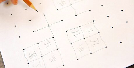 Play dots and boxes. Draw a grid of unconnected dots and then take turns with your friends, each turn requiring a player to draw a single line to connect only two dots. When you form a box, write your initial inside to claim it as your own and earn a point! Each box you complete earns you a bonus turn.