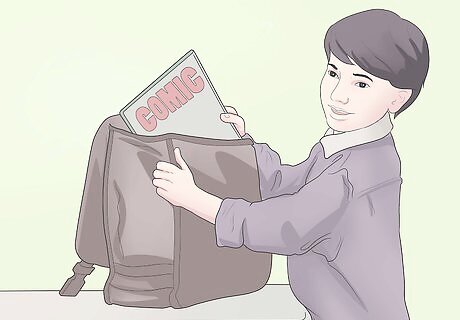 Explore fictional worlds. Though if you have motion sickness, reading might not be the distraction for you. Check out comic books, genres in your areas of interest (fashion, science, fantasy), or review schoolwork to prepare for your next class.