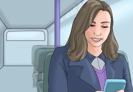 Make use of technology. Social media might make it hard for you to concentrate on homework, but on the bus it can make a difficult ride home a little more bearable. If you're not in the mood to interact with other people on the bus, pop in your earbuds and listen to some of your favorite tunes. Handheld games can make your bus ride pass in a flash, but be careful to check bus rules before you play, as some districts do not allow handheld games at school or on the bus.