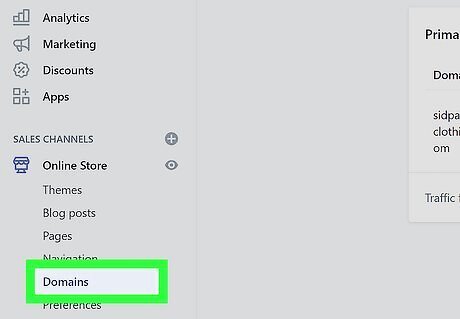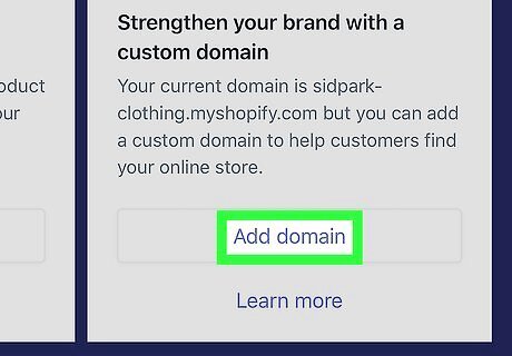 Set a domain for your store. Click Domains from the menu on the left side of the page under your store. You can skip this step to use the domain offered by Shopify (it normally ends in ".myshopify.com"). You can also buy a domain or link to a domain you've already purchased.
