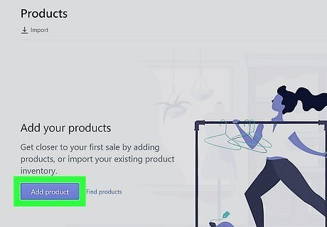 Add products to your store. Click Products in the menu on the left side of the page under Home and Orders. Click Add product in the middle of the page to create a product listing.