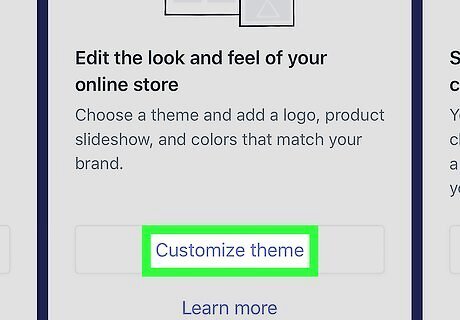 Tap CUSTOMIZE THEME. You'll see this in the tile above "Select a Plan." You can either upload your own theme or use some of the offered designs, some of which are free to use. You'll see the theme you have active, and you can also choose to "Customize" your current theme, "Upload theme," and "Explore free themes." You can return to the main store creation screen by tapping the x in the top right corner once you have a theme chosen.