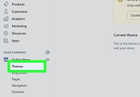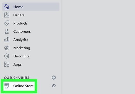 Click the Online Store tab. You'll see this in the menu on the left side of the page under "Sales Channels."