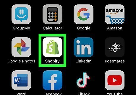 Open Shopify. This app icon looks like a green bag featuring a white dollar symbol ($) that you can find on one of your Home screens, in the app drawer, or by searching. If you don't have the Shopify mobile app, you can get it for free from the App Store or Google Play Store.
