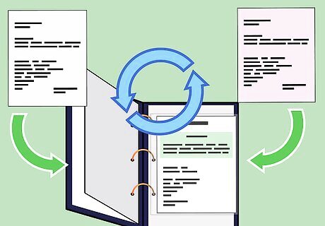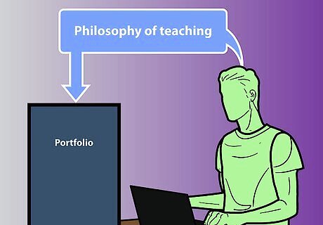 Make a hard copy of all of the gathered documents and put them into a 3-ring binder or notebook. Add a cover to your notebook stating your name. Include a table of contents at the beginning.Create a Teacher Portfolio Step 13Bullet2.jpg Use page protectors for your documents rather than punching holes.Create a Teacher Portfolio Step 13Bullet3.jpg Sequence the materials so your personal information, such as degrees, teaching license and philosophy, are first.