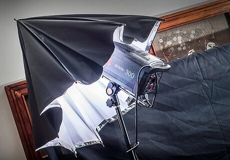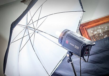 Set up your light stand fairly close to your subject. The umbrella needs to be a parabolic umbrella, because you will be shooting into it.